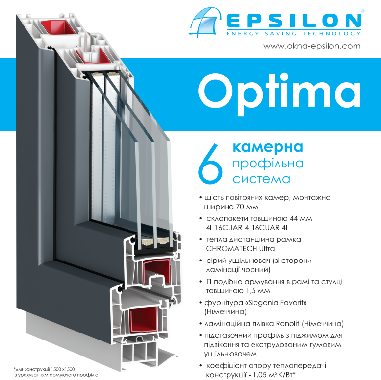 В квартирах житлового комплексу LAKETOWN встановлені вікна з інноваційною профільною системою виробництва Epsilon Optima з зовнішнім ламінуванням та монтажною глибиною 70 мм. Перевагами даної профільної системи є 6 повітряних камер і встановлений двокамерний енергозберігаючий склопакет завтовшки 44 мм та високоефективне скло з покриттям Guardian SunGuard SuperNeutral. Такі технологічні рішення створюють іще затишнішими оселі, зберігаючи їх від шуму навколо, та енергоефективнішими , зберігаючи тепло взимку та прохолоду влітку.