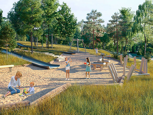 Пішохідний бульвар та парк - бульвар та парк вздовж узбережжя озера, після реновації простору, буде найулюбленішим місцем для фотосесій та прогулянок для жителів LAKETOWN та мешканців міста. Пішохідні та велосипедні доріжки, зручні скамейки, дитячій та спортивний майданчики. Вздовж бульвару не проходить автомобільна дорога, тому тут буде безпечно та затишно. Кожен тут знайде для себе комфортне місце. На газонах, в тіні дерев ми поставимо лежаки, підготуємо зони для відпочинку як малечі так і дорослим. На вихідних тут буде зручно робити пікніки.